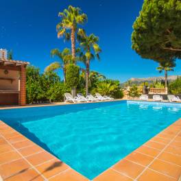 Large villa with private pool 200 m from the beach, located in Calpe (Costa Blanca). The villa is built on 2 floors, with a total of 300 m2.INTERIOR: Ground floor: Large living room with pool table. 1 large bedroom with 2 single beds, ceiling fan, and bathroom with shower, toilet and sink in suite. 1 large bedroom with double bed, bathroom with shower, toilet and sink in suite 1 bedroom with 2 single beds. 1 bathroom, with shower, toilet and sink.First Floor: Living room with large windows overlooking the pool. Fully equipped kitchen, 1 double bedroom. 1 bathroom with bath, toilet and sink. From the kitchen and through external stairs, you will access the 2nd floor, where the solarium is located. Here is 1 room with a washing machine. In the solarium there is another room with a bathroom.EXTERIOR: Large closed plot of 2000 m2. You will enjoy a large garden terrace area, with palm trees and plants, where you can find the large swimming pool (12×6), with Roman stairs and outdoor shower. You can make meals outdoors on the barbecue. The villa has a large closed garage for several vehicles.LOCATION: At 200 meters from the villa you will reach the renowned sandy beach with blue flag, ´Levante Beach´ € as well as promenade, restaurants and supermarkets. Calpe is 2.7 km away