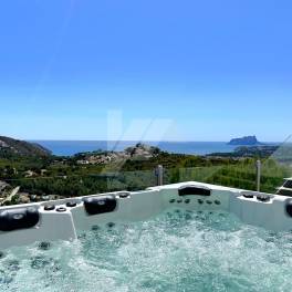 Fantastische villa met spectaculair uitzicht op zee en de peñon de ifach. De villa heeft een grote garage, een grote wooneetkamer met open keuken en fantastisch uitzicht op zee.