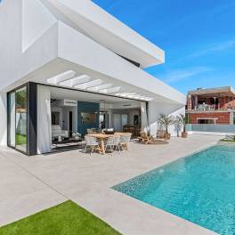 Deze luxe moderne villa is ontworpen met veel licht en open ruimtes, met kelder, garage, overloopzwembad, ruime terrassen en aangelegde tuin om het hele jaar door te genieten van het mediterrane klimaat.
