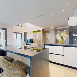 Gebouwd villa’s op 2 verdiepingen, plus kelder, en heeft 3 slaapkamers, 3 badkamers, open keuken met woonkamer, inbouwkasten, prive solarium, tuin met zwembad en parkeerplaats voor 2 auto’s. Tegen betaling is er een lift beschikbaar.