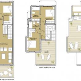 Elke villa is zorgvuldig ontworpen met een eigentijdse esthetiek, met 3 ruime slaapkamers en 3 elegant ingerichte badkamers. De open indeling integreert naadloos de keuken en woonkamer, waardoor een lichte en uitnodigende ruimte ontstaat vol natuurlijk licht door de grote ramen en glazen schuifdeuren. Stap naar buiten naar je privétuin, compleet met zwembad, waar je kunt ontspannen en genieten van de serene omgeving. Het uitgestrekte terras biedt extra ruimte voor ontspanning of vermaak, zodat je volop kunt genieten van de schoonheid van het buitenleven.