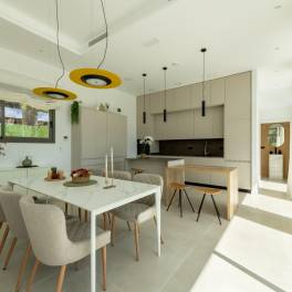 EXCLUSIEVE NIEUWBOUW VILLA IN PINAR DE CAMPOVERDE~~Moderne nieuwbouw villa’s in Pinar de Campoverde.~~Villa’s van 1 verdieping met 3 slaapkamers, 3 badkamers, volledig ingerichte keuken met eiland, woonkamer, inbouwkasten, terras, kelder, tuin met privé zwembad~10m X3’5m, met roestvrijstalen watercascade, zomerkeuken met eiland, elektrische installatie, sanitair, gootsteen en parkeerplaats.~~~Villa’s gelegen in Pinar de Campoverde (Alicante), omgeven door diensten, sportfaciliteiten, in de buurt van verschillende golfbanen zoals Las Colinas en Lo Romero Golf, plus op 10 minuten afstand van Mar Menor en de stranden van de Middellandse Zee.~~De prachtige stranden van Torre de la Horadada en Mil Palmeras met boulevard van fijn zand liggen op 10 minuten rijden.~~De luchthavens van Corvera (Murcia) en Alicante liggen op respectievelijk 40 en 55 minuten rijden.~