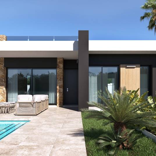 Woonoppervlakte: 107 m², alles gelijkvloers voor optimaal gemak.Dakterras: Privé dakterras van 50 m² met panoramisch uitzicht, ideaal voor zonnige dagen en gezellige avonden.Zwembad: Privézwembad direct naast uw villa.Volledig gemeubileerd: Inclusief stijlvolle meubels, witgoed en airconditioning. Alles is tot in de puntjes verzorgd – u kunt direct genieten!Extra’s: Privéparkeerplaats, aangelegde tuin en hoogwaardige afwerking.