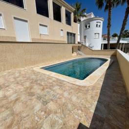 Deze uitzonderlijke woning, gebouwd in 1995, beschikt over drie ruime slaapkamers en drie badkamers binnen een woonoppervlakte van 80 m², gelegen op een royaal perceel van 500 m². De woning heeft een privézwembad en biedt parkeergelegenheid voor twee voertuigen, wat zorgt voor gemak en veiligheid.