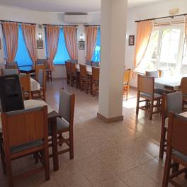 Restaurant of begane grond bestaat uit: kleine entree veranda, inkomhal, grote eetkamer voor 40 personen met open haard en airconditioning (warm-koud), bar, 2 toiletten, gesloten keuken met toegang naar buiten, berging en toilet met douche, buitenterras (155 m2) met luifels en ruimte voor 80 tot 90 personen, met barbecue.