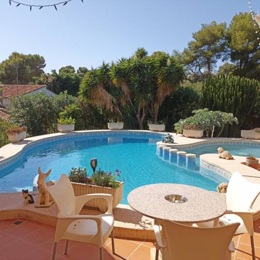Te koop Villa / Restaurant in Moraira, met zwembad, op een vlak hoekperceel van 1.334 m2. Zeer goede locatie en kan worden gekocht om uw eigen restaurant te hebben of om te worden gebruikt als een villa, wat werk te doen. Niet in de hoofdweg langs de kust. Een paar meter van diensten en supermarkt. Minder dan 1 km. van enkele rotsstranden (calas) in de omgeving.