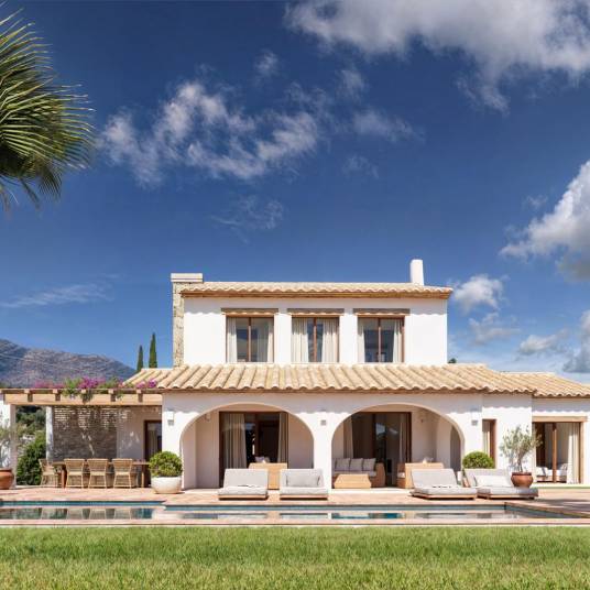 Elegante villa met panoramisch uitzicht op de bergen, de vallei en de zee. Prachtige villa in mediterrane stijl is een project dat gebouwd moet worden op een royaal perceel, met een uitzonderlijke mix van privacy, natuurlijke schoonheid en modern comfort in de buurt van de stad Teulada. Ontworpen om het adembenemende uitzicht op zee en de bergen te maximaliseren, belichaamt het pand de charme van een traditioneel landhuis met eigentijdse luxe afwerkingen. Teulada, een charmant stadje aan de Spaanse Costa Blanca, biedt een perfecte mix van traditionele charme en modern gemak. Met zijn rijke geschiedenis, pittoreske straatjes en nabijheid van prachtige stranden, biedt het een vredige maar levendige levensstijl. Uitstekende voorzieningen, een gastvrije gemeenschap en een prachtige mediterrane omgeving maken het een ideale plek om te wonen. ACCOMMODATIE: Entree, hal, woonkamer, eetkamer, keuken, 3 tweepersoonsslaapkamers met en-suite badkamer. Interne trap naar: master suite met inloopkast, kantoor en en-suite. BUITEN: rechthoekig zwembad, aangelegde tuinen, zomerkeuken, terrassen en overdekte terrassen VOLLEDIGE DETAILS Dit prachtige vrijstaande nieuwbouw villaproject te koop combineert modern comfort met tijdloze mediterrane elegantie, genesteld op een royaal perceel met adembenemend uitzicht op zee en de bergen. Ontworpen om de natuurlijke schoonheid en rust te maximaliseren, biedt het pand privacy, luxe en naadloos binnen-buitenleven. De villa beschikt over een open lounge, eetgedeelte en keuken, die naadloos aansluiten op het terras aan het zwembad via grote schuifdeuren, perfect om te genieten van de spectaculaire omgeving. De begane grond beschikt over drie ruime tweepersoonsslaapkamers, elk met een eigen badkamer, terwijl de bovenste verdieping is gewijd aan een luxe master suite met een inloopkast of kantoorruimte en een grote eigen badkamer. De villa is gebouwd met hoogwaardige materialen en toont een verfijnde mix van rustiek en mediterraan design, versterkt door grote Technal-ramen en timmerwerk dat het interieur overspoelt met natuurlijk licht. Comfort is verzekerd met vloerverwarming, airconditioning via kanalen en gemotoriseerde jaloezieën overal. De keuken en het interieur kunnen worden aangepast in "Ibicenco-stijl" of moderne ontwerpen, wat flexibiliteit biedt om aan individuele voorkeuren te voldoen. De villa beschikt ook over een wasruimte met wasmachine en droger, een optie voor een natuurstenen vloer en buitenafwerkingen in "Ibicenco-stijl" pleisterwerk. Het dak is afgewerkt met keramische tegels in Arabische stijl, wat bijdraagt aan de charme. De prachtig aangelegde tuinen en terrassen zijn afgewerkt met hoogwaardige materialen, waaronder natuurlijke klei of gepolijst beton, wat zorgt voor een naadloze overgang tussen binnen- en buitenruimtes. Het rechthoekige zwembad is afgewerkt met mozaïektegels en is voorzien van een voorinstallatie voor verwarming. Een barbecueplek, pergola en automatisch irrigatiesysteem maken de buitenruimte compleet, waardoor het ideaal is om de mediterrane levensstijl te omarmen. Met uitgebreide terrassen, aangelegde tuinen en voldoende ruimte om te ontspannen terwijl u geniet van het panoramische uitzicht. Het pand biedt ook off-road parkeren en de mogelijkheid voor aanpassingen om aan individuele voorkeuren te voldoen. Daarnaast is 6.000 m² van het landgoed gewijd aan de teelt van de beroemde Muscatel-druif van de regio. Het pand beschikt over een gemotoriseerde toegangspoort, garage, veranda en pergola. Het voldoet aan de energie-efficiëntiecertificeringen en huidige bouwvoorschriften. Beveiligingssystemen en alarmen zorgen voor extra gemoedsrust. Deze unieke villa is ideaal voor degenen die op zoek zijn naar een exclusieve maar vredige retraite, gunstig gelegen dicht bij prachtige stranden en essentiële voorzieningen. Het is ideaal voor permanente bewoning, vakantiegebruik of als investering met aanzienlijk verhuurpotentieel. Neem nu contact met ons op om een bezichtiging van dit buitengewone pand te regelen.