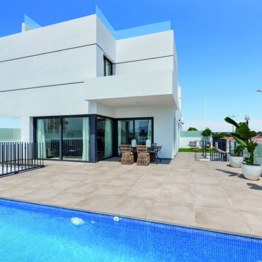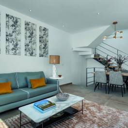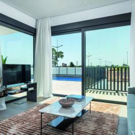 De woningen beschikken over 3 slaapkamers en 2 badkamers, waarvan 1 en-suite. Er is ook een apart toilet. Op de begane vind je de ruime woon-/eetkamer met een prachtige open keuken, en de hoofdslaapkamer met en-suite badkamer. Op de eerste verdieping bevinden zich de andere 2 slaapkamers en badkamer. Ook is er een groot terras waar je heerlijk kan genieten van de Spaanse temperaturen. De woning heeft een privézwembad en een parkeerplaats voor de auto.