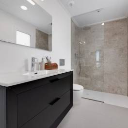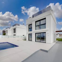 Elke villa, met 327 m² gebouwd en 280 m² bruikbaar, is verdeeld over drie verdiepingen. Op de begane grond vindt u een ruime woon-eetkamer, een moderne keuken, een complete badkamer en een veelzijdige kamer. De tweede verdieping herbergt twee suites met privéterrassen, perfect om te genieten van de rust en het uitzicht. Het solarium op de derde verdieping belooft onvergetelijke momenten met spectaculair uitzicht op zee.