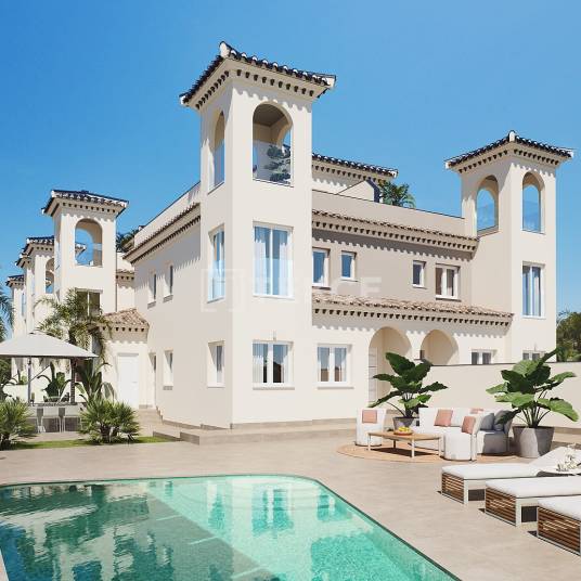 4-Slaapkamer Halfvrijstaande Villa’s te Koop met Solarium in BigastroBigastro is een charmante stad in de Vega Baja-regio, bekend om zijn rustige sfeer en natuurlijke schoonheid. Omringd door weelderige boomgaarden en glooiende heuvels, biedt het een serene omgeving terwijl het toch dicht bij essentiële voorzieningen ligt. Met een sterke lokale gemeenschap, cultureel erfgoed en gemakkelijke toegang tot nabijgelegen steden, is Bigastro een uitstekende locatie voor wie op zoek is naar een rustige maar goed verbonden levensstijl.De villa’s te koop in Bigastro, Alicante, zijn gunstig gelegen op slechts 0,8 km van de dichtstbijzijnde supermarkt, 1,2 km van restaurants en cafés, en 1,3 km van een apotheek. Het stadscentrum ligt op 1,5 km afstand en biedt toegang tot extra diensten en winkels. Een medisch centrum bevindt zich op 1,9 km van de woning, waardoor gezondheidszorg binnen handbereik is. De bruisende stad Orihuela ligt op slechts 5,5 km afstand, terwijl de prachtige stranden van Guardamar binnen 26 km te bereiken zijn. De luchthaven van Alicante bevindt zich op 56 km van het complex, wat gemakkelijke reisopties biedt.Het residentiële complex bestaat uit 10 halfvrijstaande villa’s, ontworpen met moderne architectuur en hoogwaardige afwerkingen. Elke woning beschikt over een privéperceel, een ondergrondse parkeergarage met directe toegang en een optioneel privézwembad. De gemeenschap biedt goed onderhouden groene zones en schilderachtige omgevingen, waardoor een harmonieuze balans tussen comfort en natuur ontstaat.Deze elegante villa’s hebben een eigentijds ontwerp met ruime open leefruimtes die overspoeld worden met natuurlijk licht. De woningen beschikken over 4 slaapkamers, 3 stijlvolle badkamers en een volledig uitgeruste keuken met hoogwaardige apparatuur die naadloos aansluit op de eet- en woonruimte. Een opvallend kenmerk is het 39 m² grote privé solarium, dat adembenemende panoramische uitzichten op het omliggende landschap biedt. Hoogwaardige materialen en moderne afwerkingen versterken de luxe uitstraling van deze woningen. ALC-01021