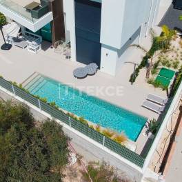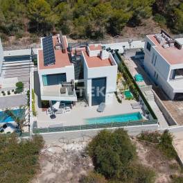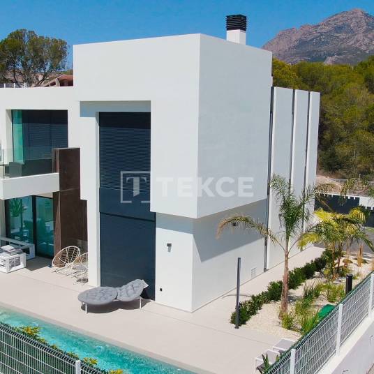 Elegante Villa’s met Privézwembaden en Dakterrassen in La Nucia AlicanteGenesteld in de gewilde stad La Nucia, in het noorden van de provincie Alicante, bieden deze uitzonderlijke villa’s een exclusieve woonervaring. La Nucia staat bekend om zijn rustige sfeer, omgeven door de natuur, maar toch gunstig gelegen in de buurt van zowel stedelijke geneugten als zandstranden. Deze locatie vindt zijn plaats in de regio Costa Blanca, een mediterraan toevluchtsoord voor toeristen, gekenmerkt door een heerlijk klimaat, overvloedige natuurlijke schoonheid zoals bergen en paradijselijke stranden, en een gevarieerde culinaire scene.La Nucia biedt een uitgebreid scala aan diensten en recreatieve activiteiten; op korte loopafstand van de beschikbare villa’s heeft u toegang tot supermarkten, boetieks, eetgelegenheden en medische voorzieningen. Op slechts vijf minuten rijden komt de levendige stad Benidorm in zicht, met een opvallende skyline. Hier stippelen scholen, busstations, themaparken, uitgaansgelegenheden, hoogwaardige stranden en een jachthaven het landschap uit. Een rit van slechts tien minuten leidt naar een groot winkelcentrum en prestigieuze golfbanen. La Nucia beschikt over uitstekende verbindingen met de luchthaven van Alicante via de snelweg AP-7, waardoor u binnen 40 minuten op de luchthaven kunt aankomen.De villa’s te koop in Alicante bevinden zich in een beveiligd complex met nachtbeveiligingsdiensten en bevinden zich op ruime percelen van 451 m². De buitenruimtes zijn genereus, met afgesloten parkeergelegenheid, aangelegde tuinen, uitnodigende zwembaden, terrassen en een solarium op het dak met panoramische vergezichten. Intern beslaan de woonruimtes drie niveaus, waarvan er één een ruime semi-kelder is. Elke woning omvat vier slaapkamers met grote kasten, aangevuld met vier zorgvuldig ontworpen en-suite badkamers. Moderne open keukens en een handige wasruimte ronden de interieurvoorzieningen af.De inaugurele fase zal naar verwachting in december 2022 voltooid zijn, waarbij de prijzen een reeks extra’s omvatten, waaronder afgewerkte kelders en het gemak van liften. ALC-00543