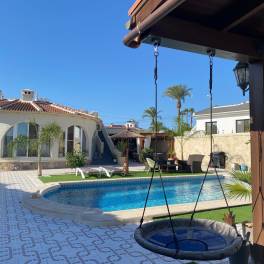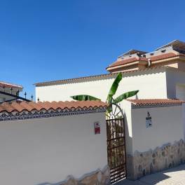 Exclusieve villa met gastenverblijf en privézwembad te koop in Benijófar.~~Villa met gastenverblijf, zwembad en totale privacy.~Ontdek deze unieke Spaanse villa op een ruim perceel van 834 m2, op slechts 5 minuten wandelen van het levendige centrum van Ciudad Quesada. Geniet van absolute rust, privacy en luxe in een prachtig aangelegde omgeving, met een apart gastenverblijf, 2 garages (waarvan één geschikt voor een camper) en grote terrassen met volledige privacy.~~De hoofdwoning beschikt over 3 slaapkamers, 2 badkamers, een lichte woonkamer met open keuken en een charmante overdekte veranda. In de tuin vindt u een volledig gerenoveerde casita van 70 m2, ideaal voor gasten of verhuur, uitgerust met een eigen keuken, badkamer met inloopdouche, woon- en eetkamer en een tweepersoonsslaapkamer met ingebouwde kasten.~~Buiten geniet u van een spectaculaire ontspanningsruimte met een zwembad van 9 x 4 m, zowel zonnige als overdekte terrassen, een solarium met panoramisch uitzicht, een gezellige zomerbar en diverse zitplekken – perfect om te genieten van de 320 zonnige dagen per jaar die deze regio biedt.~~Belangrijkste kenmerken:~~Perceel van 834 m2~~Hoofdwoning + gerenoveerde casita van 70 m2 met tweepersoonsslaapkamer~~4 slaapkamers – 3 badkamers in totaal~~Volledig instapklaar, ideaal als permanente of vakantiewoning~~2 ruime garages, waarvan één geschikt voor een camper~~Airconditioning, plafondventilatoren, berging en wasruimte~~Solarium met prachtig uitzicht~~Een unieke kans op een toplocatie aan de Costa Blanca – neem vandaag nog contact met ons op voor een bezichtiging!
