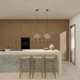 De buitenruimte heeft meerdere terrassen, een sfeervolle pergola met barbecueplek en een uitnodigend zwembad. De villa is volledig uitgerust met vloerverwarming, airconditioning en hoogwaardige afwerkingen. Ondergronds zijn er aparte technische ruimtes voorzien voor het verwarmingssysteem en zwembadinstallatie.
