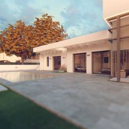 Deze villa is gebouwd op één niveau plus een kelder en beschikt over 3 slaapkamers, 2 badkamers (waarvan één en suite) en 1 gastentoilet. De ruime open woonkamer verbindt de moderne, volledig uitgeruste keuken met de eet- en zithoek, die allemaal uitkomen op een prachtig terras met een privézwembad. Er is een multifunctionele kelder van 94 m2 met een wasruimte en een garage voor twee auto’s.