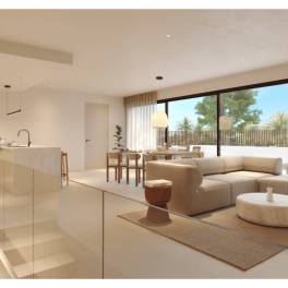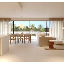Indeling binnenBij binnenkomst valt meteen de royale leefruimte op:woonkamer met open keuken van meer dan 45 m²metbar/ontbijtbar, en eenvlak ingebouwde glazen schuifpui van meer dan 8 meterdie volledig open kan. Zo ontstaat een indrukwekkendebinnen–buitenruimte van meer dan 90 m².De woning heeft3 tweepersoonsslaapkamers:
