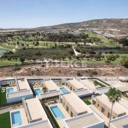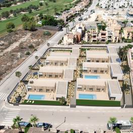 Elegante golfvilla’s met 3 slaapkamers in Vistabella Golf AlgorfaDeze villa’s bevinden zich in het Vistabella Golf-gebied in Orihuela Costa, een gewaardeerde woon- en recreatiebestemming aan de zuidelijke Costa Blanca. De regio staat bekend om haar ontspannen levensstijl, het hele jaar door zon en een breed aanbod aan voorzieningen rondom de golfbaan, waaronder restaurants, sportfaciliteiten en dagelijkse voorzieningen. Het biedt een evenwichtige omgeving die geschikt is voor zowel permanent wonen als vakantiegebruik.Villa’s te koop in Algorfa liggen op 0,5 km van de golfbaan en het clubhuis, op 1 km van lokale winkels, restaurants en cafés, op 5 km van nabijgelegen plaatsen zoals San Miguel de Salinas en Los Montesinos, op 15 km van Torrevieja en de stranden van Orihuela Costa. De dichtstbijzijnde internationale luchthaven ligt op ongeveer 55 km afstand.De urbanisatie bestaat uit een beperkt aantal moderne vrijstaande villa’s, wat zorgt voor een laagbouw en privé woonomgeving. De woningen zijn zorgvuldig gepositioneerd om optimaal gebruik te maken van natuurlijk licht, uitzicht en privacy, terwijl ze toch eenvoudig toegang bieden tot gemeenschappelijke voorzieningen en de omliggende golffaciliteiten.De woningen zijn gelijkvloers ontworpen en beschikken over 3 slaapkamers en 2 badkamers. Het interieur heeft een eigentijdse indeling met strakke, minimalistische lijnen en open woon- en eetruimtes. Grote ramen verbinden het interieur naadloos met het privézwembad en de tuin, waardoor er veel natuurlijk licht binnenvalt. Hoogwaardige afwerkingen en moderne designelementen zorgen voor een verfijnde en comfortabele woonervaring. ALC-01177