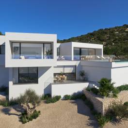 In Lirios de Cumbre, een geconsolideerd woondomein, staat Villa Altair met een bouwstijl in rechte lijnen en een hedendaagse esthetiek die perfect passen bij de natuur van de Middellandse Zee. Deze woning is ontworpen om het licht op te vangen en biedt uitzicht van in elke ruimte. Er is een perfect evenwicht tussen bouwstijl, comfort en omgeving. Dit is een woning voor wie houdt van rust, zonder een stijlvol leven te moeten missen. De villa is gebouwd in drie niveaus, aangepast aan het afhellende terrein. Op de bovenverdieping is de hoofdingang, waarlangs je in een ruime en klare leefruimte komt, met salon, eetkamer en een open keuken die vlot in één enkele ruimte gecombineerd zijn. Deze ruimte geeft rechtstreeks uit op het terras en de infinity pool. Op dit zelfde niveau bevindt zich de grote suite met dressing room, en-suite badkamer en panoramisch uitzicht. Op de benedenverdieping zijn twee slaapkamers met badkamer en toegang tot een overdekt terras. Op deze verdieping is er een multifunctionele vrijetijdsruimte voor fitness of studie. Een niveau lager is er een kelder met lichtschachten, een ideale plaats als bijkomende ruimte of opslagplaats.Een binnenbaan in het residentiële complex geeft toegang tot de woning en leidt naar de ingang voor voetgangers en een half open garage voor twee wagens. Je kunt het ontwerp van de woning in verschillende niveaus vanaf hier appreciëren via een met daglicht overspoelde binnentrap. Vila Altair is uitgerust met de nieuwste energie-efficiënte technologieën voor alle comfort: klimaatregeling via aerothermie, ventilatie met warmteterugwinning, vloerverwarming, zonnepanelen en een domotica systeem om rolluiken, verlichting en verluchting van waar ook te besturen. De afwerkingsmaterialen zijn geselecteerd op esthetiek en duurzaamheid, waaronder buitenschrijnwerk met thermische onderbreking, zonwerend glas en keramische grootformaattegels, zowel binnen als buiten.Het uitzicht is van groot belang: van overal in de woning zie je de blauwe horizon van de Middellandse Zee, het steile profiel van de kust en het silhouet van de Peñón de Ifach op de achtergrond. In het licht van de avond wordt elke ruimte anders en Villa Altair, waar bouwstijl een totale ervaring is, wordt een bevoorrecht uitkijkpunt.