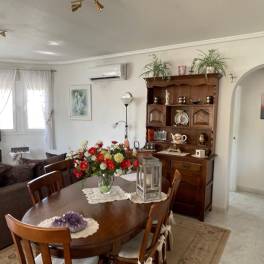 Well-maintained detached villa located on a corner plot in Ciudad Quesada. It is set in a beautiful garden with an outdoor shower, bamboo gazebo, garden shed and space for a swimming pool or parking for a mobile home or motorhome leaving enough parking space for family car too, as well as an electric gate. The total plot size is 370m². The main house comprises a spacious living/dining room with a natural gas fireplace, an open-plan fitted kitchen, three double bedrooms with built-in wardrobes, two bathrooms, one with a shower and one with a bathtub, a terrace, and a solarium with fantastic mountain views. Separate storage room for washing machine etc. The villa also has a separate, spacious, and well-designed underbuild (64²) with a living room, open-plan kitchen, two bedrooms or 1 very large bedroom (easy to divide the space), a bathroom, and a small storage room. The space is divided by folding panels, allowing it to be converted into one large 60² room in seconds if desired. This is accessed via a separate entrance at the side of the house. It offers convenient, independent guest accommodation or a spacious, separate living/working area. The villa has many additional features, including: hot water via solar panels, extra ceiling insulation, mosquito nets on all doors and windows, hot and cold air conditioning with a dehumidifier in all rooms, gutters and a rainwater tank, a water softener in the kitchen for drinking water, mains gas supply. Sold mostly furnished (details can be discussed). A communal swimming pool is just a few meters down the street. This beautiful villa is located in Ciudad Quesada, near Rojales. The water park is a 5-minute walk away, and shops, restaurants, and bars are also within easy walking distance (approximately 15 minutes). The health center and the fantastic La Marquesa golf course are just a few minutes away by car. Alicante and San Javier (Murcia) airports are approximately a 35-minute drive away, and the beaches are about a 15–20 minute drive away. The typical Spanish seaside town of Guardamar is 15 minutes away, and the popular, more touristy resort of Torrevieja is 20 minutes away. This beautiful villa is ideal for permanent residence or a perfect holiday home in the sun!