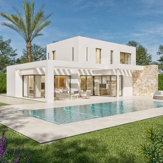 De villa heeft 204 m² woonoppervlakte verdeeld over twee verdiepingen, met 112 m² terrassen, 34 m² pergola’s, een privézwembad van 36 m² en een garage van 33 m². Het ontwerp combineert moderne architectuur, hoogwaardige materialen en een prachtige mediterrane omgeving.