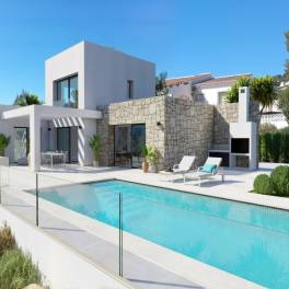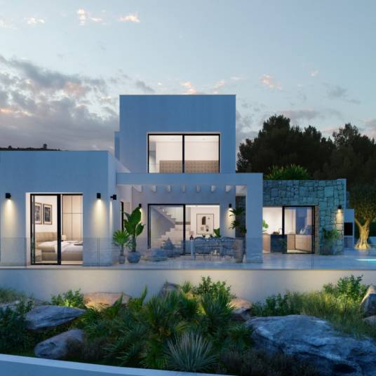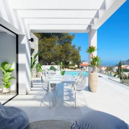Moderne designvilla gelegen in de urbanisatie Solana II, met panoramisch uitzicht op de bergen en een zuidelijke oriëntatie. Deze woning beschikt over 171 m² woonoppervlakte verdeeld over twee verdiepingen, 87 m² aan terrassen, 21 m² aan pergola’s en een zwembad van 32 m², gelegen op een perceel van 898 m².