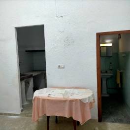 Ruimtelijke IndelingDe woning beschikt over drei gezellige slaapkamers, één op de begane grond en de andere twee op de bovenverdieping, ideaal voor familierusten of als werkruimte. De begane grond heeft een badkamer, een kleine keuken en een woonkamer met hoge plafonds en houten balken. Het huis heeft renovatie nodig.