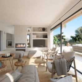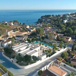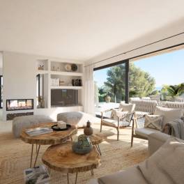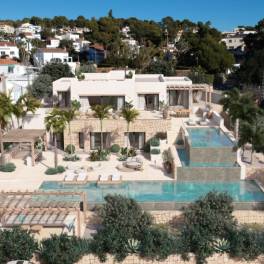 Luxe villa in aanbouw met zeezicht aan de kust van Benissa (Costa Blanca, Alicante). Deze villa in Ibiza-stijl met prachtig uitzicht op zee ligt op 400 meter van het strand van Fustera, restaurants en een supermarkt.