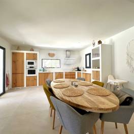 De villa beschikt over ruime en lichte kamers, perfect voor gezinsleven en entertainment. De interieurs zijn zorgvuldig ingericht, met materialen van hoge kwaliteit en een ontwerp dat mediterrane traditie balanceert met moderne accenten. De keuken is een droom voor culinaire liefhebbers, uitgerust met de nieuwste apparatuur en een functioneel ontwerp dat uitnodigt om speciale momenten te delen met vrienden en familie.