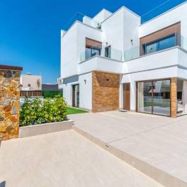 HALFVRIJSTAANDE VILLA MET 3 SLAAPKAMERS, KELDER EN PRIVÉ ZWEMBAD IN BENIJÓFAR~~Nieuw project van herenhuizen en halfvrijstaande villa’s in Benijófar~Dit exclusieve nieuwbouwproject in het charmante stadje Benijófar biedt 9 moderne herenhuizen en halfvrijstaande villa’s, elk met 3 slaapkamers, 3 badkamers, een kelder, een privézwembad, parkeergelegenheid op het terrein en een solarium op het dak.~~Hoogwaardige afwerking en design~Alle woningen zijn gebouwd met topkwaliteit afwerkingen, waaronder wit gelakte deuren en ingebouwde kasten met magneetsluitingen. De keukens zijn volledig gemeubileerd en voorzien van high-end apparatuur zoals een deelbare koelkast, magnetron, oven, vaatwasser, wasmachine, afzuigkap en kookplaat.~~Energie-efficiëntie en comfort~Deze woningen zijn ontworpen voor maximaal comfort met airconditioning en hoogwaardige thermische en akoestische isolatie, met Guardian Sun ramen met dubbele beglazing. Het buitenschrijnwerk is gemaakt van gelakt aluminium met thermische onderbrekingstechnologie en de gemotoriseerde rolluiken zorgen voor extra isolatie.~~Leefruimte buiten~Elke woning heeft een privétuin met een zwembad afgewerkt met mozaïektegels van hoge kwaliteit, een buitendouche en een barbecueplaats met gootsteen.~~Toplocatie in Benijófar~Benijófar ligt op slechts 8 km van de stranden van Guardamar del Segura en biedt gemakkelijke toegang tot voorzieningen en bezienswaardigheden:~- Luchthaven Alicante-Elche: 40 km~- La Finca golfbaan: 4 km en La Marquesa golfbaan: 7 km~- Winkelcentrum Zenia Boulevard: 20 km~- Haven van Torrevieja: 13 km
