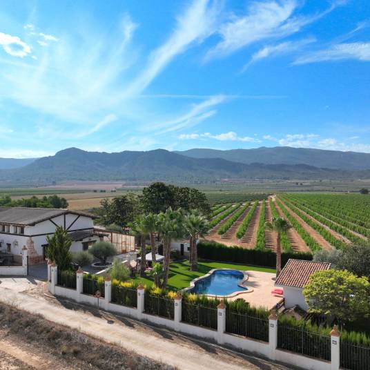 Dit enorme landgoed van 478 m2 ligt op een terrein van iets minder dan 3000 m2. Het ligt op 15 minuten rijden van de gewilde stad Pinoso en op 5 minuten van alle goede voorzieningen van de stad Yecla, waaronder een scala aan restaurants, supermarkten, lokale markt, scholen en een plaatselijk ziekenhuis.Het was vroeger een oude bodega (wijnmakerij) en is volledig gerenoveerd met een bijzonder hoge kwaliteit. Op de begane grond heeft het landhuis een ruime entreehal en een schitterende grote open woon-/eetkamer met gewelfde balkenplafonds. De hoogwaardige keuken-ontbijtkamer is volledig uitgerust met granieten werkbladen en een vrijstaande houtgestookte Aga en een aparte bijkeuken met wijnopslag. In de stookruimte bevinden zich de verwarmings- en warmwaterinstallatie. Op de begane grond bevindt zich ook een grote tweepersoonsslaapkamer met eigen badkamer en inbouwkasten, openslaande deuren naar de tuin en er is een grote garderobekast.De enorme ruimte naast de woonkamer is toegankelijk via het hoofdgebouw of via een aparte ingang en is perfect voor entertainment. Het heeft een grote open haard, handig voor het maken van familiepaella’s, een houtgestookte pizzaoven en een barruimte. Deze ruimte is ook voorzien van airconditioningunits. Vanuit deze ruimte is er toegang tot de pergola om heerlijk buiten te eten.Vanuit de woonkamer leidt een marmeren trap naar de eerste verdieping met een open galerij-tussenverdieping. Er is nog een zithoek en een werkplek, 3 tweepersoonsslaapkamers, allemaal met eigen badkamer en inbouwkasten.De zeer besloten tuin is omheind en heeft elektrische poorten. De zomerkeuken met verder een grote open haard/BBQ is een geweldige ruimte om buiten te koken. De tuin wordt volledig automatisch geïrrigeerd en is beplant met volwassen bomen. Er is een grasveld, een fruitboomgaard en een terras van geperst beton. Het zwembadgedeelte is omheind en er is een groot zwembad in vrije vorm omgeven door kunstgras van hoge kwaliteit en met schaduwrijke plekken door de prachtige palmbomen. Het poolhouse heeft een kleedkamer, toilet en douche en een aparte ruimte waarin alle zwembadapparatuur is ondergebracht. Er is ook een garage en een aparte berging welke nog kunnen worden opgebouwd tot gastenverblijf.De woning verkeert overal in uitstekende staat en is voorzien van leidingwater, elektriciteit, vloerverwarming op biomassabrandstof, een moderne hoogwaardige biomassakachel in de woon-/eetkamer, kantel- en draairamen met dubbele beglazing en een Verisure-alarm.Er is een zeer goede toegang tot het pand via een geasfalteerde weg. De luchthaven van Alicante en de stranden liggen op 1 uur rijden. De woning is gelegen in de wijnstreek Yecla (DO) en dicht bij de wijnregio’s Jumilla en Alicante en biedt een uitstekende selectie bodega’s om te bezoeken, waarvan vele met hoog aangeschreven restaurants. Dankzij de nieuwe snelwegen is het 1 uur en 15 minuten rijden naar Murcia, de hoofdstad van de regio, en een vergelijkbare rit naar de stad Valencia. Het huis ligt ook op slechts 15 minuten rijden van het hogesnelheidstreinstation in Villena.Dit is een prachtig pand en zou een geweldige woning of bed breakfast kunnen zijn. Het pand is geclassificeerd als stedelijk en daarom zouden vergunningen relatief eenvoudig te verkrijgen moeten zijn. De gemeente heeft inmiddels bevestigd dat een vergunning voor B mogelijk is met enige kleine aanpassingen. Deze keuzes kunnen door de nieuwe eigenaar verder worden bepaald en de aanvraag kan dan worden ingediend. In totaal zouden er 4 a 5 kamers voor verhuur kunnen worden gemaakt.Maak vandaag nog een afspraak.Deze woning is exclusief in de verkoop, dit betekent dat alle documenten vooraf zijn gecontroleerd en alles in orde is of in orde gebracht kan worden.
