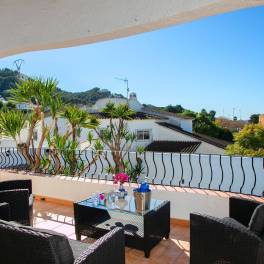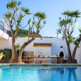 Deze prachtige villa, gelegen in Benitachell, biedt een unieke kans voor zowel eigen gebruik als verhuur, dankzij de aanwezige verhuurlicentie. Gelegen op een royaal perceel van 1.104 m² en met een bebouwde oppervlakte van 228 m², beschikt deze villa over alles wat je nodig hebt voor luxe en comfort aan de Costa Blanca.De villa omvat vijf ruime slaapkamers en vijf volledig uitgeruste badkamers, wat zorgt voor voldoende ruimte en privacy voor gasten of familieleden. Buiten vind je een prachtig privézwembad, perfect om te ontspannen en te genieten van het mediterrane klimaat. Het zwembad en de omliggende terrassen bieden een ideale plek om te genieten van de zon, terwijl de royale tuin rondom de villa veel ruimte biedt voor buitenactiviteiten.De centrale ligging van deze villa biedt gemakkelijke toegang tot de nabijgelegen supermarkt en de hoofdweg die leidt naar het centrum van Moraira en de stranden. Of je nu op zoek bent naar een permanente woning, een vakantieverblijf of een verhuurinvestering, deze villa heeft het allemaal.Mis deze unieke kans niet en plan vandaag nog een bezichtiging!