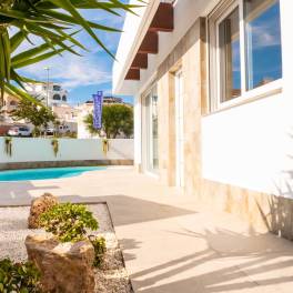 Deze prachtige, recent gebouwde villa uit 2024 is gelegen in een van de beste zones van Ciudad Quesada, op loopafstand van de golfbaan. Met een zonnige zuidoriëntatie en vrij uitzicht biedt deze woning een unieke kans om te genieten van rust, comfort en een luxe levensstijl aan de Costa Blanca.De villa staat op een perceel van 274 m² en heeft een bebouwde oppervlakte van 229 m² verdeeld over meerdere niveaus. Het interieur bestaat uit vijf ruime slaapkamers en drie volledig uitgeruste badkamers. De royale woon-eetkamer met geïntegreerde keuken heeft directe toegang tot de tuin en het privézwembad – perfect voor ontspanning of om gasten te ontvangen.In het souterrain bevinden zich twee van de slaapkamers, een badkamer, een tweede woonkamer met keuken en directe toegang tot buiten. Ideaal als gastenverblijf of voor extra privacy binnen het gezin.De woning is voorzien van luxe afwerkingen zoals een veiligheidsdeur, gemotoriseerde rolluiken en hoogwaardige materialen die zorgen voor comfort en duurzaamheid.Bijzonderheden:Nieuwbouw (2024) – sleutel klaarPrivézwembadParkeergelegenheid op eigen terreinTerras en tuin op het zuidenModerne keuken en badkamersVoorzien van bergingMeubels niet inbegrepenGelegen op een toplocatie, dicht bij winkels, restaurants en golf. Neem contact met ons op voor meer informatie of een bezichtiging!
