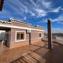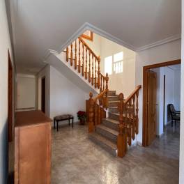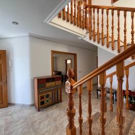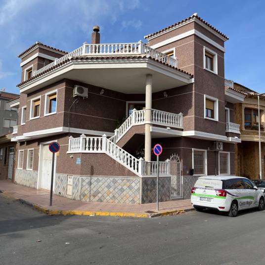 Wij presenteren u met genoegen deze ruime eengezinswoning, ideaal gelegen in het hart van Rojales, op loopafstand van alle voorzieningen, winkels en de wekelijkse markt.De woning beschikt over een totale bebouwde oppervlakte van circa 343 m², verdeeld over drie verdiepingen, en biedt veel potentieel dankzij de flexibele indeling en extra ruimte.De begane grond is volledig open en wordt momenteel gebruikt als garage en berging. Deze verdieping beschikt reeds over een complete badkamer en voorbereidende installaties voor een keuken, waardoor het eenvoudig kan worden omgebouwd tot een zelfstandige woonruimte of gastenverblijf.Op de eerste verdieping bevindt zich de hoofdwoning. Hier vindt u een ruime en lichte woon-/eetkamer, een aparte keuken met toegang vanuit zowel de hal als de woonkamer, vier slaapkamers, waaronder een master bedroom met en-suite badkamer, een tweede badkamer en een groot patio-terras met aparte wasruimte.Via de hal bereikt u de trap naar de bovenste verdieping, waar zich een extra lichte kamer bevindt – perfect als tweede woonkamer, hobbyruimte of extra slaapkamer. Daarnaast vindt u hier een riant solarium met zomerkeuken – de ideale plek voor bijeenkomsten met familie en vrienden en om te genieten van het milde klimaat dat deze regio het hele jaar door biedt.Belangrijkste kenmerken:Bouwjaar: 19935 slaapkamers2 badkamers + 1 gastentoiletBebouwde oppervlakte: 343 m²Perceeloppervlakte: 146 m²Privégarage en bergingGroot solarium met zomerkeukenPatio met wasruimteGeen gemeenschapskostenJaarlijkse IBI: €362Deze woning verkeert in goede staat en biedt volop mogelijkheden voor gezinnen, mensen die extra ruimte zoeken, of als investering met het oog op verhuur.Neem vandaag nog contact met ons op voor meer informatie of om een bezichtiging te plannen.