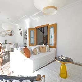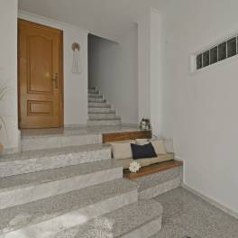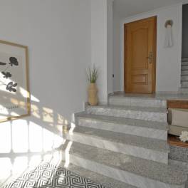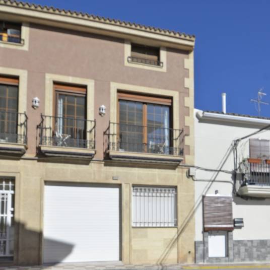 Dit ruime en goed onderhouden herenhuis met vier slaapkamers en vier badkamers ligt in een rustige omgeving, op slechts vijf minuten lopen van het dorpscentrum. Voorzieningen zoals scholen, apotheken, banken en supermarkten zijn daardoor altijd binnen handbereik.De begane grond van 106 m² is ingericht als een zeer ruime garage met plaats voor maximaal zes auto’s. Er is bovendien een badkamer aanwezig en een aparte voetgangersingang met automatische deur. Dankzij de afmetingen en de praktische indeling biedt deze ruimte ook mogelijkheden voor een eigen bedrijf of om te verhuren en zo extra inkomsten te genereren.Op de eerste verdieping, die ook bereikbaar is via de achterstraat, vallen direct de marmeren vloeren en de lichte hal met lichtkoepel op. Hier bevindt zich een ruime woon- en eetkamer, uitgerust met airconditioning en een warmtepomp. De grote keuken is verbonden met een eetkamer met open haard en eveneens voorzien van airconditioning. Vanuit de keuken is er toegang tot een patio van dertig vierkante meter die aansluit op de achterstraat. Via een trap in de patio bereik je bovendien een dakterras van vijftig vierkante meter, vanwaar je een prachtig uitzicht hebt. Op deze verdieping bevinden zich verder nog een badkamer en een praktische wasruimte.De tweede verdieping van 85 m², eveneens afgewerkt met marmer, bestaat uit twee zolderkamers met dakramen, een complete badkamer en nog twee slaapkamers. Eén van de slaapkamers is ingericht als een rustige ruimte, terwijl de andere een suite vormt met eigen badkamer. Alle kamers beschikken over ingebouwde kasten en het ontbreken van bovenburen zorgt voor volledige privacy.De woning is voorzien van acht fotovoltaïsche panelen en twee thermische zonnepanelen met een capaciteit van 480 liter, beide met garantie. Dit systeem levert niet alleen warm water, maar ook aanzienlijke energiebesparingen op. Het energiecertificaat van de woning is C. Het huis is bijna dertig jaar geleden gebouwd en altijd zorgvuldig onderhouden, waardoor grote reparaties nooit nodig zijn geweest. Recent zijn alle buitendeuren en balkondeuren vervangen door nieuwe Climalit-ramen en -deuren en ook de garagedeur is vernieuwd en volledig automatisch.De woning wordt aangeboden tegen een zeer concurrerende prijs. Verdere verlagingen of onderhandelingen zijn niet mogelijk, waardoor dit een unieke kans is om een goed onderhouden en ruime woning met veel voorzieningen te kopen.