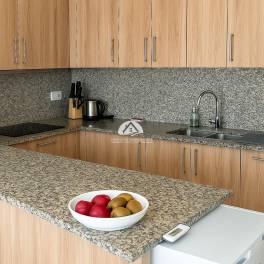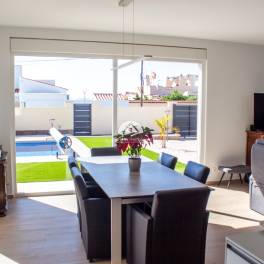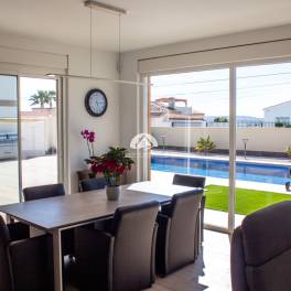 Het hoofdhuis beschikt over een ruime woon- / eetkamer met aansluitend een volledig uitgeruste open keuken met vaatwasser , oven , Siemens inductiekookplaat en grote koelkast . Vanuit de keuken heeft u direct toegang tot een groot terras van 150 m² – ideaal om te genieten van het mediterrane klimaat en de omliggende natuur.