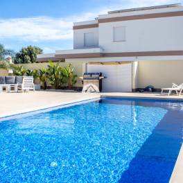 De woning beschikt over twee grote terrassen , een privézwembad van 10 x 4,5 meter , een hot tub en een buitendouche met warm water . Er is ook een overdekte carport aanwezig, die uitstekende zonbescherming biedt voor uw voertuig.