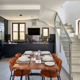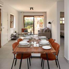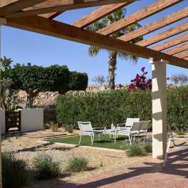 De villa beschikt over een royale hoofdslaapkamer die uitkomt op een groot terras, een fraai aangelegde privétuin en volop ruimte voor diner in de buitenlucht. Binnenin zijn hoogwaardige Porcelanosa tegels door het hele huis aangebracht. Verder is de woning voorzien van airconditioning, dubbel glas, een volledig ingerichte moderne keuken, ingebouwde kledingkasten en veiligheidsvoorzieningen voor extra gemoedsrust. Met drie ruime slaapkamers, waaronder een master suite met en-suite badkamer, twee luxe badkamers en een open woon- en eetkamer, biedt deze villa een perfecte balans tussen comfort en stijl.
