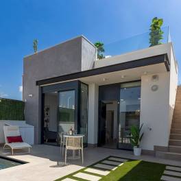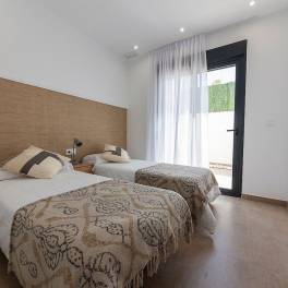 Prachtige gelijkvloerse villa’s met 2 of 3 slaapkamers en 2 badkamers, vrijstaand of halfvrijstaand, met solarium en privézwembad, op slechts 400 meter van de stranden.