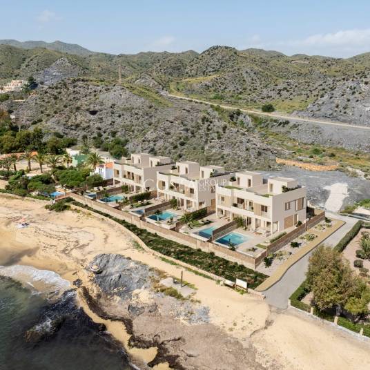 Gelegen in de charmante stad Cuevas del Almanzora, bieden deze exclusieve villa’s een unieke woonervaring aan de eerste lijn van de zee. Met slechts drie beschikbare woningen is elke villa ontworpen om het indrukwekkende uitzicht op zee te maximaliseren en een luxe en rustige omgeving te bieden. De bevoorrechte locatie garandeert dat de bewoners kunnen genieten van de nabijheid van de zee, waardoor deze villa’s de ideale keuze zijn voor degenen die op zoek zijn naar een kusttoevluchtsoord met alle moderne gemakken.BUITENRUIMTESHet buitendesign van de villa’s in Cuevas del Almanzora is ontworpen om maximaal comfort en privacy te bieden. Elke villa beschikt over een privé tuin, perfect om te genieten van het mediterrane klimaat. Bovendien beschikken de woningen over een privézwembad, ideaal om te ontspannen en van de zon te genieten. De ruime terrassen bieden extra ruimte voor buitenplezier, waardoor bewoners kunnen genieten van het uitzicht op zee in een rustige en serene omgeving. Het solarium is een andere attractie, die een exclusieve ruimte biedt voor ontspanning en het genieten van het landschap.BINNENRUIMTESHet interieur van de villa’s is ontworpen met een focus op comfort en functionaliteit. Elke woning beschikt over vier slaapkamers en drie badkamers, wat een ruime en goed ingedeelde ruimte biedt voor het hele gezin. De vloeren van porseleinen tegels voegen een vleugje elegantie en duurzaamheid toe aan de ruimtes. De villa’s zijn uitgerust met airconditioning, wat het hele jaar door een aangename sfeer garandeert. Ingebouwde kasten bieden efficiënte en discrete opslag. Bovendien beschikken de woningen over een garage, wat comfort en veiligheid voor de voertuigen biedt.