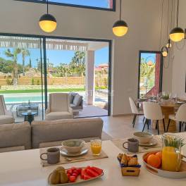 Kenmerken zijn een ruime interne ontvangstruimte die via een ‘gelijkvloerse’ vloer uitkomt op de overdekte veranda’s en de tuin en meer dan 93 m2 gecombineerde woon- en eetruimte binnen en buiten biedt, ontworpen om als één geheel te worden gebruikt in het bijzonder bevoorrechte klimaat van de regio.