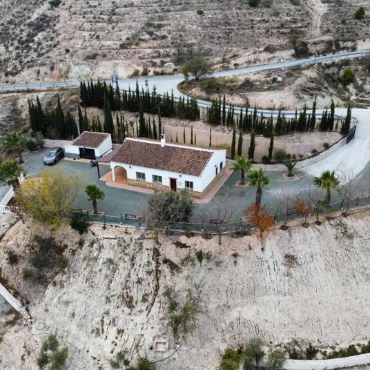Deze prachtig gelegen villa biedt alles voor een comfortabel en ontspannen verblijf in een rustige en schilderachtige omgeving, met adembenemend uitzicht op de Muela de Montalviche en het beroemde Kasteel van Vélez Blanco. Gelegen aan de rand van een berg, geniet u van het indrukwekkende panorama over de omliggende bergen en de stad. De villa is perfect voor wie op zoek is naar rust, ruimte en natuur. De woning wordt volledig gemeubileerd aangeboden en is uitgerust met alle benodigde apparatuur. Alles wat je nodig hebt voor een comfortabel verblijf is aanwezig, van keukengerei tot beddengoed en meubels. Je kunt direct verhuizen zonder extra zorgen.Kenmerken van de woning:• Oppervlakte: 140 m², met 3 ruime slaapkamers en 2 badkamers.• Keuken: Goed uitgeruste keuken met vaatwasser, koelkast, oven, Gasfornuis en magnetronen koffiezetapparaaat. In de bijkeuken, wasmachine, droger en strijkfaciliteiten.• Woonkamer: Ruime woonkamer met houtkachel en flatscreen-tv voor gezellige avonden.• Buitenruimte: Geniet van een groot terras, met diverse gezellige zitjes, ideaal om te ontspannen of te dineren met uitzicht.• Parkeren: Privéparkeerplaats op het terrein.• Toegankelijkheid: De woning is volledig rolstoeltoegankelijk en ligt op de begane grond.De villa is gelegen op een groot perceel van 8.548 m², waardoor er voldoende privacy en ruimte is. De slaapkamers bieden flexibele bedindelingen met een tweepersoonsbed en enkele eenpersoonsbedden, perfect voor gezinnen of groepen.Buitenruimte – Extra Ingericht Gebouw:• Buiten bevindt zich een apart gebouw van 22 m², die volledig is ingericht voor het ultieme buitenleven. Deze ruimte beschikt over een extra keuken en een grote barbecue voor het bereiden van heerlijke maaltijden.• Ook is er een oven die ideaal is voor het bakken van pizza’s of brood, waardoor het de perfecte plek is voor gezellige avonden met familie of vrienden.• Deze ruimte is compleet met een koelkast, vriezer en wijnkoeler, zodat u kunt genieten van een koel drankje of een uitgebreid diner in de open lucht.• Er is ook een eettafel aanwezig, waar u kunt genieten van maaltijden en het gezelschap van gasten in een sfeervolle omgeving.Waarom deze villa?• Prachtig uitzicht op de Muela de Montalviche en het kasteel van Vélez Blanco.• Gelegen in een rustige en schilderachtige omgeving, maar toch dichtbij voorzieningen in Vélez Blanco.• Perfect voor zowel een permanente woning als een vakantieverblijf.• Ideale buitenruimte voor entertainment en gezellige avonden.Dit is een unieke kans om een villa in een van de mooiste gebieden van Andalusië te bezitten, ideaal voor wie op zoek is naar rust, natuur, comfort en de mogelijkheid om te genieten van het buitenleven.De villa ligt op slechts 7 minuten van Vélez Blanco en 10 minuten van Vélez Rubio, waardoor je de perfecte balans hebt tussen het rustige plattelandsleven en de gemakken van de nabijgelegen dorpen. Of je nu boodschappen wilt doen, medische zorg nodig hebt of gewoon wilt genieten van een lokale maaltijd, beide dorpen bieden alles wat je nodig hebt binnen handbereik. Bovendien bieden ze prachtige, authentieke Andalusische ervaringen met een rijke cultuur en geschiedenis.