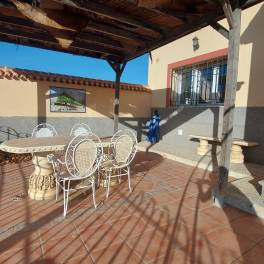 Deze charmante villa, gelegen aan Camino el Roquez 24 in Chirivel, biedt een unieke kans om te genieten van een ontspannen levensstijl in een rustige, natuurrijke omgeving. Met een royaal perceel van 485 m², inclusief een ruime woning van 250 m², een apart gastenverblijf en een grote garage, is dit huis ideaal voor gezinnen, hobbyisten of als vakantieverblijf.LocatieDe woning ligt op slechts 100 meter van het gemeentelijke zwembad, een dokter, een basisschool en een supermarkt. Omringd door prachtige natuur biedt het een vrij uitzicht op de omliggende bergen. Chirivel ligt in de regio Andalusië, bekend om zijn witte huizen, smalle straatjes en charmante Andalusische sfeer. De nabijheid van het natuurpark Sierra de las Alhambras maakt het ideaal voor wandelaars en natuurliefhebbers.Indeling van de woningHoofdwoning:3 ruime slaapkamers met ingebouwde kasten.Een lichte woonkamer.Aparte keuken met extra bergruimte voor een wasmachine.1 badkamer met een ligbad en toilet.Gastenverblijf:Klein zelfstandig appartement met eigen toilet en badkamer, perfect als kantoor of gastenverblijf.Garage (90 m²):Veel ruimte voor opslag of hobby’s.Voorzien van elektriciteit, wateraansluiting en een open haard die als grill of BBQ (Brasa) gebruikt kan worden.Directe toegang tot een gezellige binnenpatio.BuitenruimtesTuin: Ruime, zonnige tuin, perfect voor ontspanning of buitenactiviteiten.Terras en patio: De patio is voorzien van een zithoek met pergola, ideaal om te genieten van het buitenleven in alle rust.Parkeergelegenheid: Eigen parkeerplaats op het perceel.Voorzieningen en Extra’sOriëntatie: Zuid, voor optimaal zonlicht.Centrale verwarming: Het huis wordt verwarmd door een efficiënte palletkachel, die zich in de berging bevindt.Vloeren: Volledig betegeld en in uitstekende staat.Energie: Energieprestatiecertificaat in behandeling.Over Chirivel en OmgevingChirivel: Een rustig Andalusisch dorp met dagelijkse voorzieningen zoals een huisarts, een basisschool, supermarkten, lokale markten, cafés en een postkantoor. Het ligt op een prachtige locatie nabij natuurpark Sierra de las Alhambras.Afstand tot Baza: Slechts 40 minuten rijden naar de stad Baza, een levendige stad met uitgebreide voorzieningen zoals een ziekenhuis, scholen, winkels en restaurants. Baza biedt ook culturele bezienswaardigheden en ligt dicht bij het natuurpark Sierra de Baza.Waarom kiezen voor deze woning?Ideaal voor rustzoekers, gezinnen of als tweede woning.Perfecte balans tussen landelijke charme en moderne voorzieningen.Slechts 45 kilometer van Baza en goed bereikbaar via de A-92.Maak vandaag nog een afspraak voor een bezichtiging en ontdek de veelzijdigheid en rust die deze woning te bieden heeft