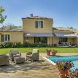 Een verwarmd zwembad van 12 bij 6 meter met warmtepomp. Een groot poolhouse van 27 m² met bar en toilet. Kelder.