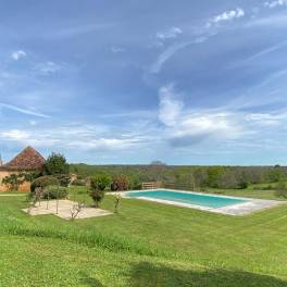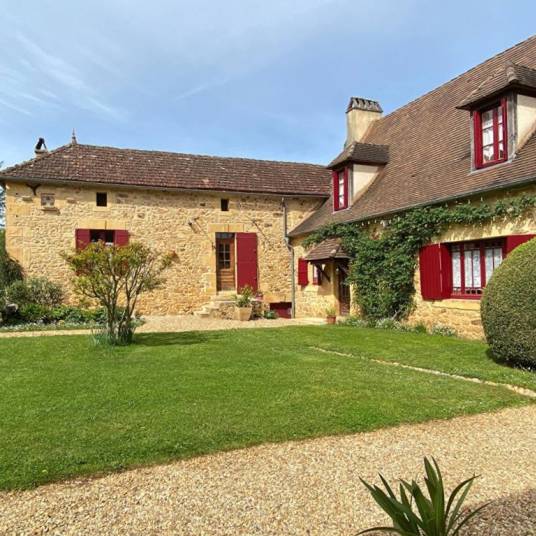 Gelegen aan de rand van een rustig gehucht ligt deze charmante Périgordijnse hoeve in U-vorm, allemaal in natuursteen, bestaande uit een hoofdhuis, twee vakantiehuisjes/gîtes, bijgebouwen en een zwembad. Prachtig uitzicht op de glooiende omgeving. Op slechts 10 minuten van een levendig vestingstadje met een mooie balans tussen rust en bereikbaarheid. Het geheel verkeert in goede staat van onderhoud. Het terrein van circa 5,3 hectare bestaat uit tuinen en weilanden en biedt ruimte, rust en een prachtig uitzicht. Het vliegveld van Bergerac ligt op 3 kwartier.