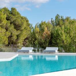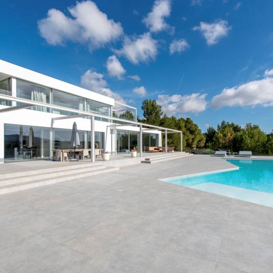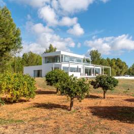 Kom genieten van luxe en moderne wooncomfort in deze prachtige vrijstaande villa in de bruisende wijk Santa Gertrudis de Fruitera. Gelegen aan Camí de Cas Ramons, biedt dit adembenemende pand uit 2018 een oase van rust en ruimte op een perceel van maar liefst 35039,00 m2.