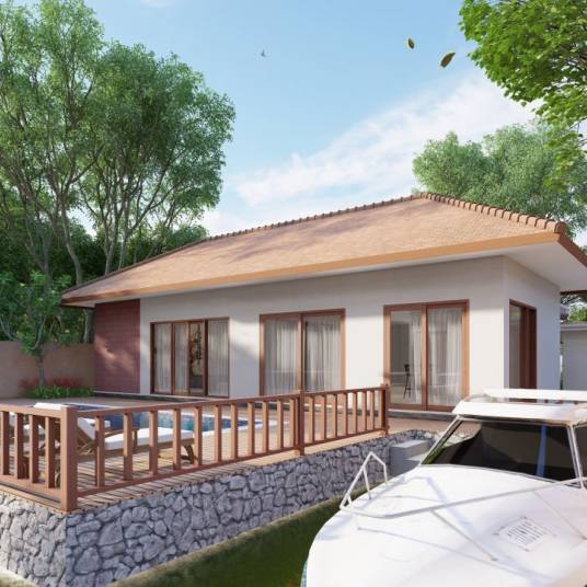 Unieke nieuw te bouwen bungalows met 3 slaapkamers, een garage, een zwembad en een aanlegsteiger voor een boot van 10 meter op een kavel van 540m voor een introductieprijs van €999.950