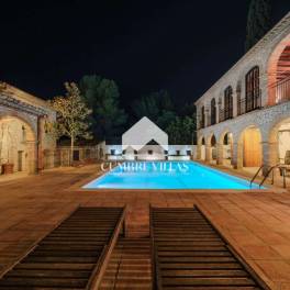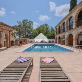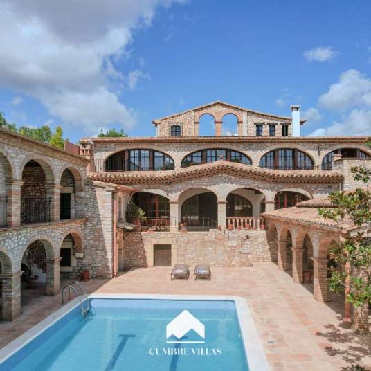Cumbre Villas presenteert deze unieke luxe villa in Catalaanse stijl, gelegen in het pittoreske Puigmoltó, een exclusieve wijk tussen Sitges, Vilanova i la Geltrú en Sant Pere de Ribes. De villa combineert het authentieke karakter van een traditionele masia met het gemak van weinig onderhoud. Het huis, herbouwd met originele materialen en in de jaren ’90 uitgebreid tot een imposante villa, heeft een U-vormige indeling rond een centraal zwembad met uitzicht over het landschap. De hoofdwoning biedt meerdere woon- en ontvangstruimtes voor optimaal vermaak, een eetkeuken en ruime eetzaal. Er zijn vier slaapkamers, drie badkamers en extra ruimtes zoals een speel- en biljartkamer, filmzaal, zomerkamer, sfeervolle winterkamer en wasruimte. Het onafhankelijke gastenverblijf biedt een woonkamer, eetkeuken, badkamer en slaapkamer. Buiten zijn er zonnige terrassen, een groot zwembad, een overdekte zit- en eetruimte met stenen BBQ, een ontspanningsruimte met sauna en jacuzzi-aansluiting, een wijnkelder en een grote fitnessruimte – allen zonder inkijk van buren. Daarnaast beschikt het eigendom over een garage met plaats voor drie auto’s. De wijk Puigmoltó ligt slechts 30 km van Barcelona en de luchthaven, met stranden, voorzieningen en internationale scholen op loop- en/of fietsafstand. Kortom: een karaktervolle luxe villa te koop nabij Sitges met uitzonderlijke leefruimtes. Neem contact op met Cumbre Villas voor meer informatie of om een bezichtiging te organiseren.
