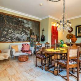 Een van de meest charmante ruimtes op deze verdieping is het kunstatelier, dat direct in verbinding staat met het terras. Het is voorzien van een volledige wand met walnoothouten kasten, Santa Catarina terracotta tegelvloeren en prachtige antieke azulejo-tegels die een vleugje lokale geschiedenis en kleur toevoegen.