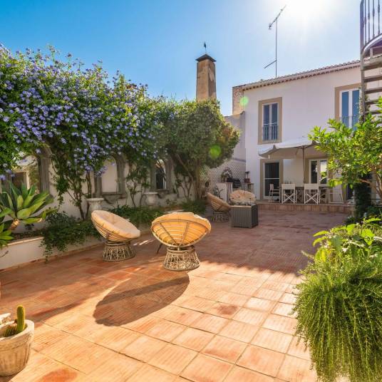 Via de originele trap met zijn prachtige smeedijzeren leuning komt u op de bovenverdieping, die veel ruimte biedt voor familie of gasten. De hoofdslaapkamer is licht en privé, met een aangrenzende badkamer met een mooie afwerking en warm natuurlijk licht. Op deze verdieping zijn nog drie slaapkamers, elk met hun eigen charme, en een grote gedeelde badkamer die volledig is betegeld met elegant Estremoz-marmer.