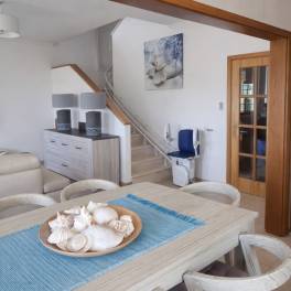 De 3 slaapkamers bevinden zich op de eerste verdieping. De hoofdslaapkamer is ruim, heeft airconditioning en een eigen balkon. De tweede slaapkamer heeft ook toegang tot een balkon en twee van de drie slaapkamers hebben inbouwkasten. Op deze verdieping bevindt zich ook een complete badkamer met een ligbad en een extra opslagruimte. Het huis is rolstoeltoegankelijk, met een stoellift die de twee verdiepingen met elkaar verbindt.