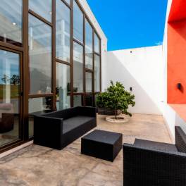 Deze moderne woning in São Marcos da Ataboeira combineert een warme, landelijke uitstraling met moderne afwerking. De hoge houten plafonds, grote ramen en open woonruimtes geven veel licht en ruimte. De keuken heeft een kookeiland en een eetgedeelte. Op de bovenverdieping is een mezzanine, ideaal als kantoor of speelruimte voor kinderen. Vier slaapkamers hebben elk een eigen badkamer, daarnaast is er een gastentoilet. Ook is er een grote bijkeuken met werkblad voor was en extra opslag.